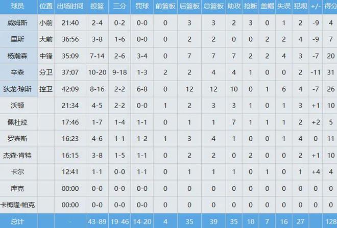 加时赛阶段,混音队集体进攻断电,仅靠杨瀚森罚球得到1分,最终128-135不敌对手。